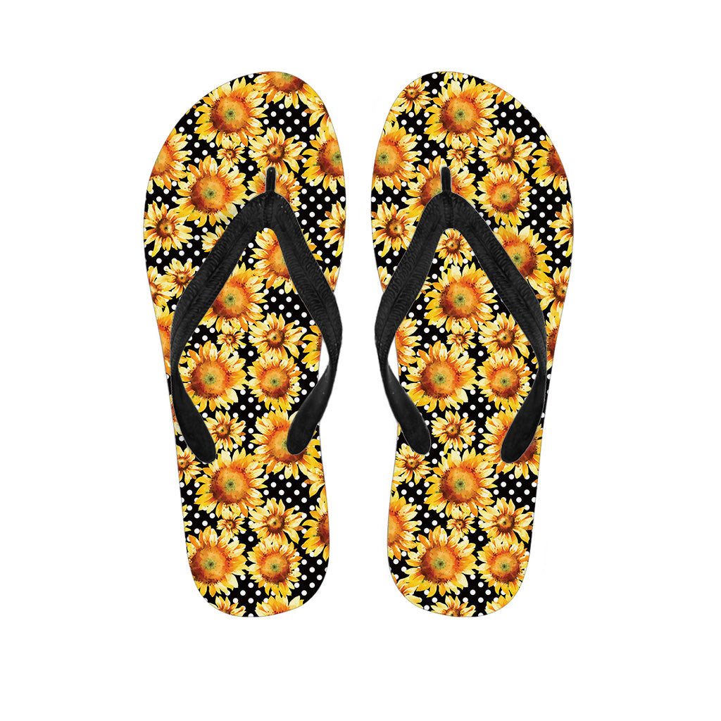 Watercolor Polka Dot Sunflower Print Flip Flops For Men Women