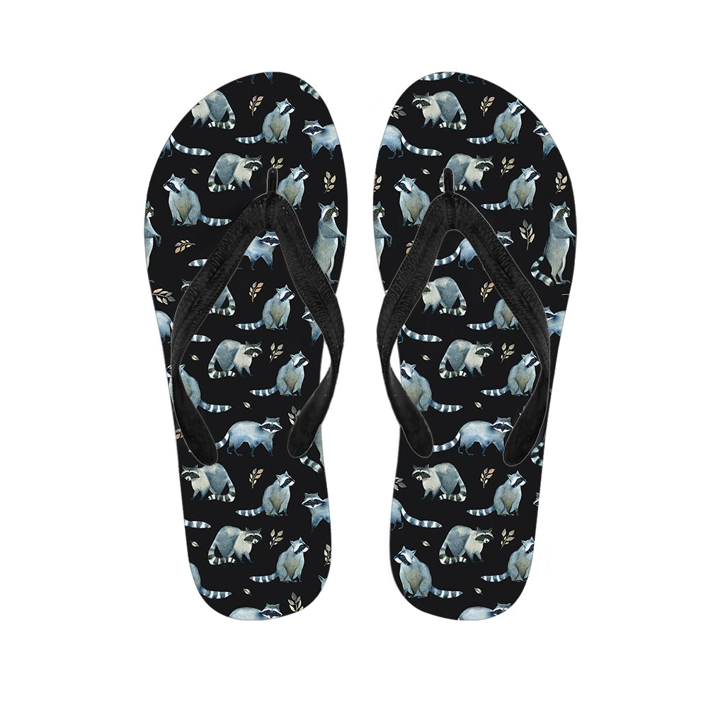 Watercolor Raccoon Pattern Print Flip Flops For Men Women