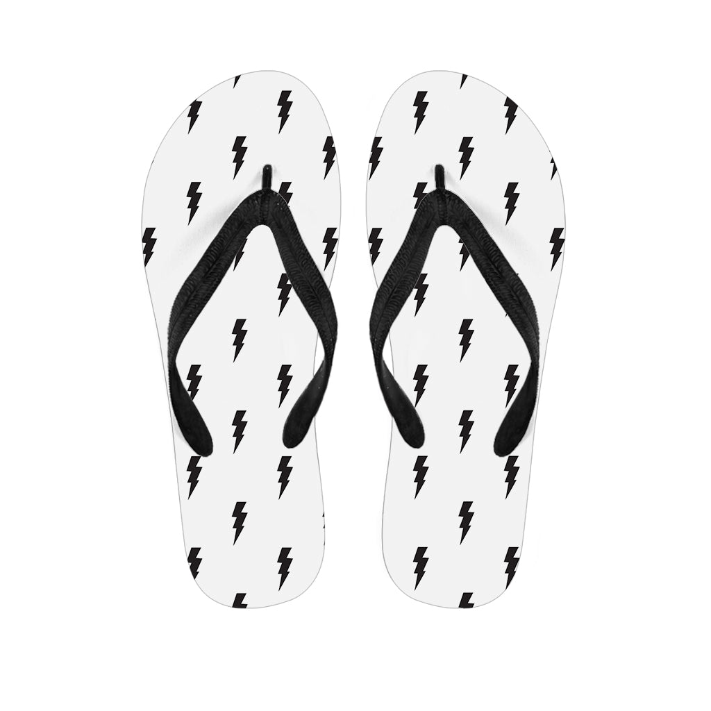 White And Black Lightning Pattern Print Flip Flops For Men Women