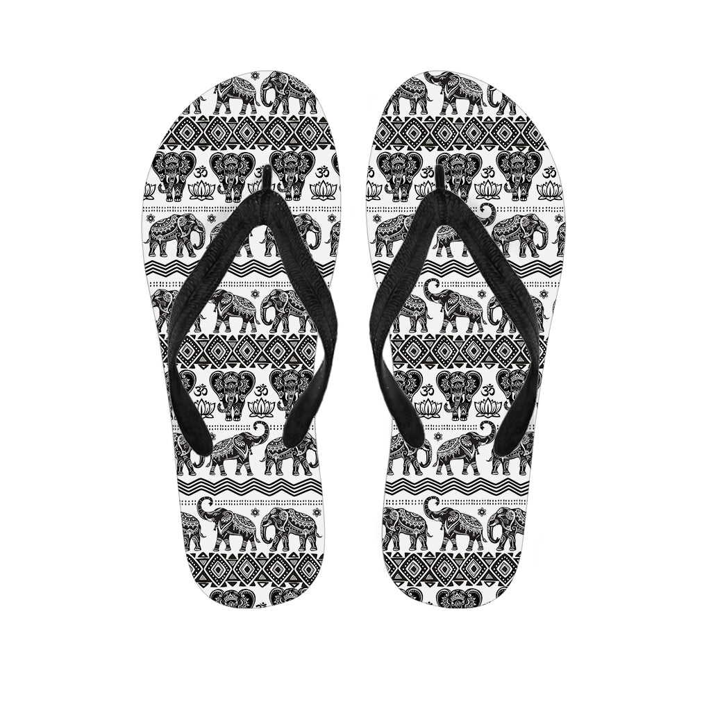 White And Black Indian Elephant Print Flip Flops For Men Women