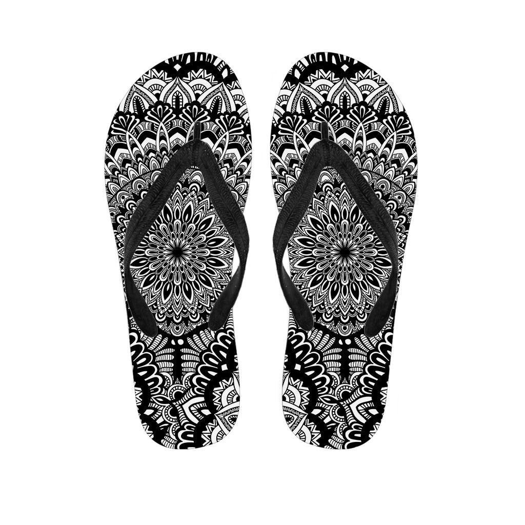 White And Black Mandala Print Flip Flops For Men Women