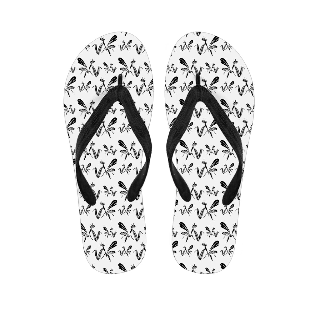 White And Black Mantis Pattern Print Flip Flops For Men Women