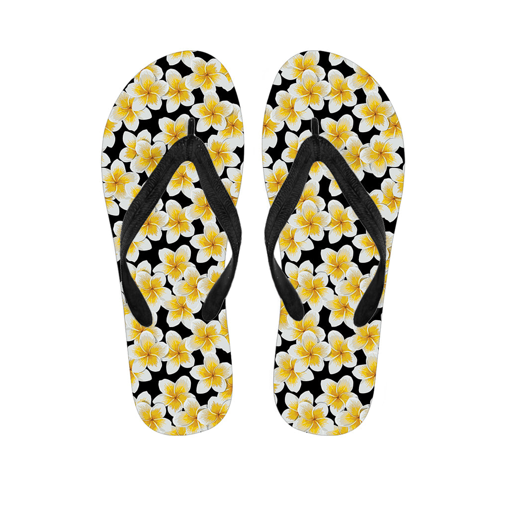 White And Black Frangipani Pattern Print Flip Flops For Men Women