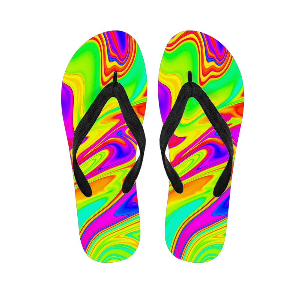 Abstract Neon Trippy Print Flip Flops For Men Women