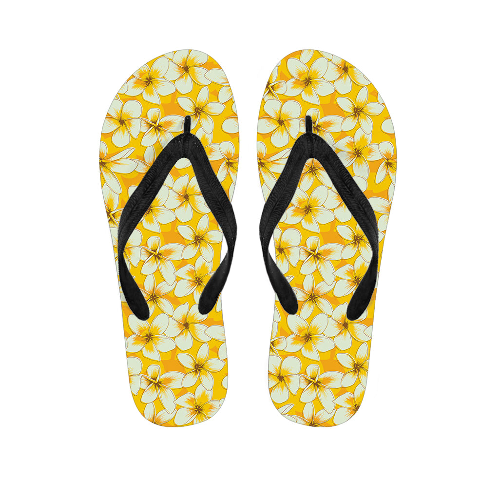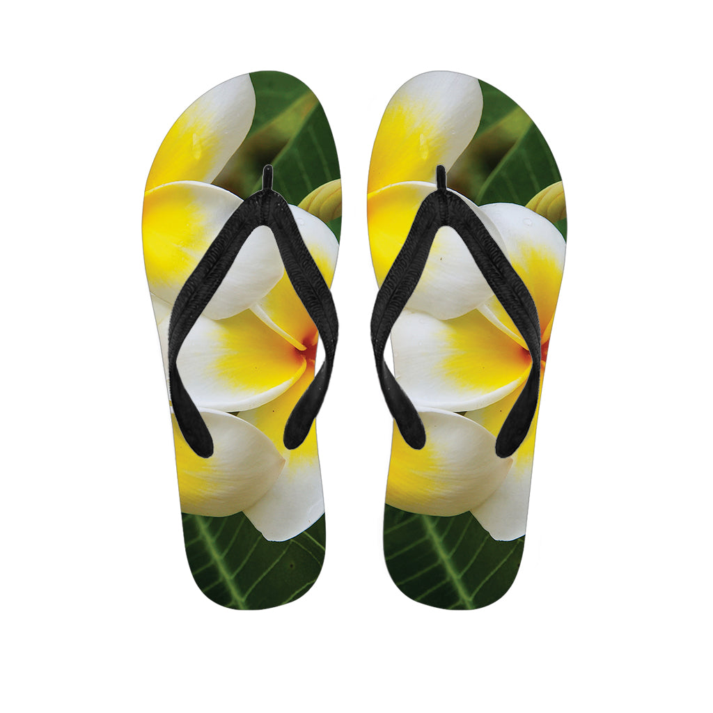 White And Yellow Plumeria Flower Print Flip Flops For Men Women