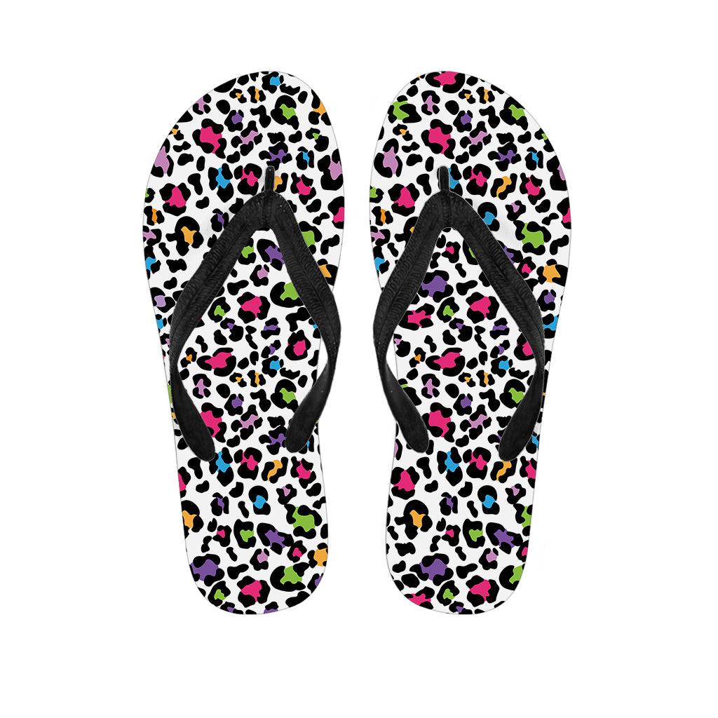 White And Rainbow Leopard Print Flip Flops For Men Women