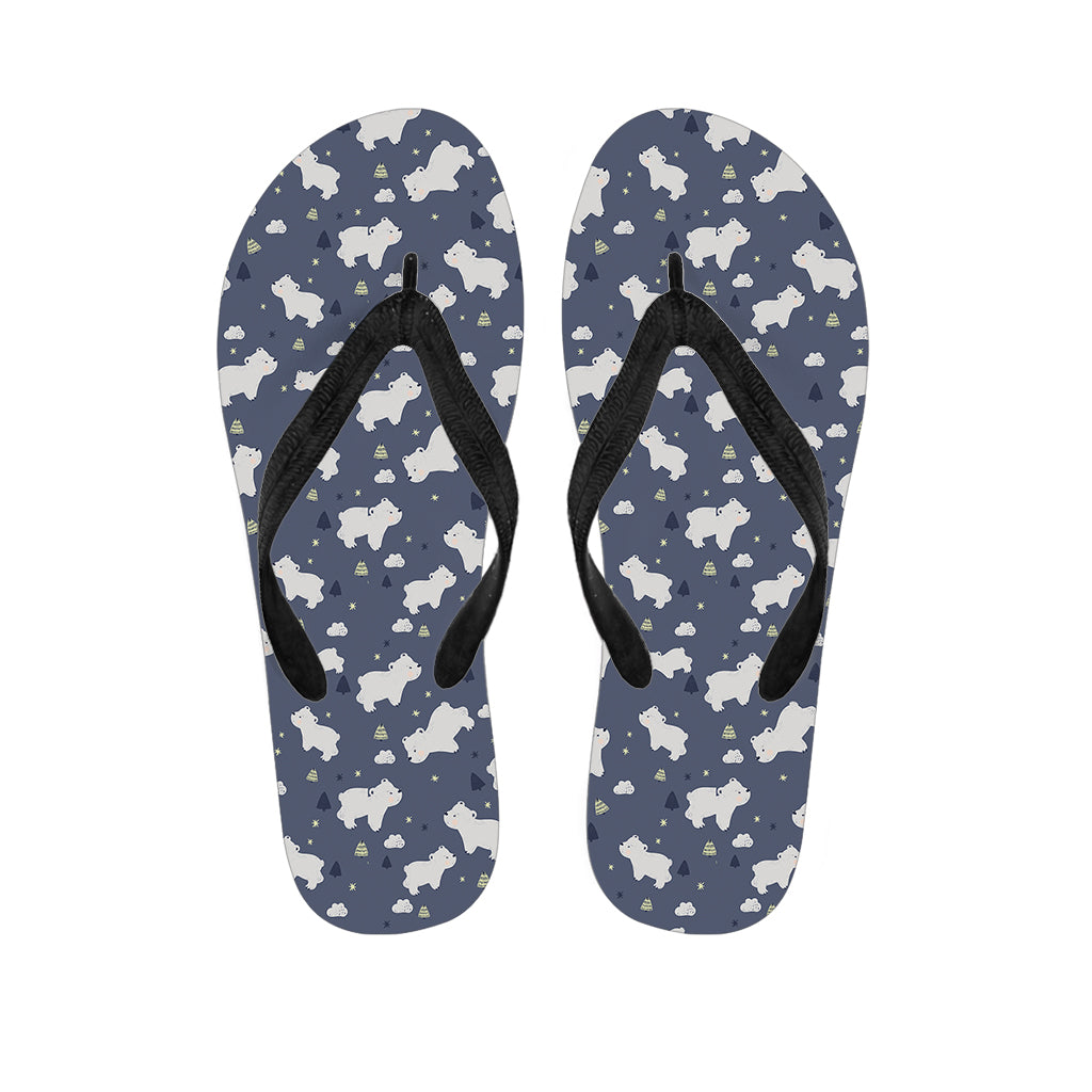 White Baby Polar Bear Pattern Print Flip Flops For Men Women