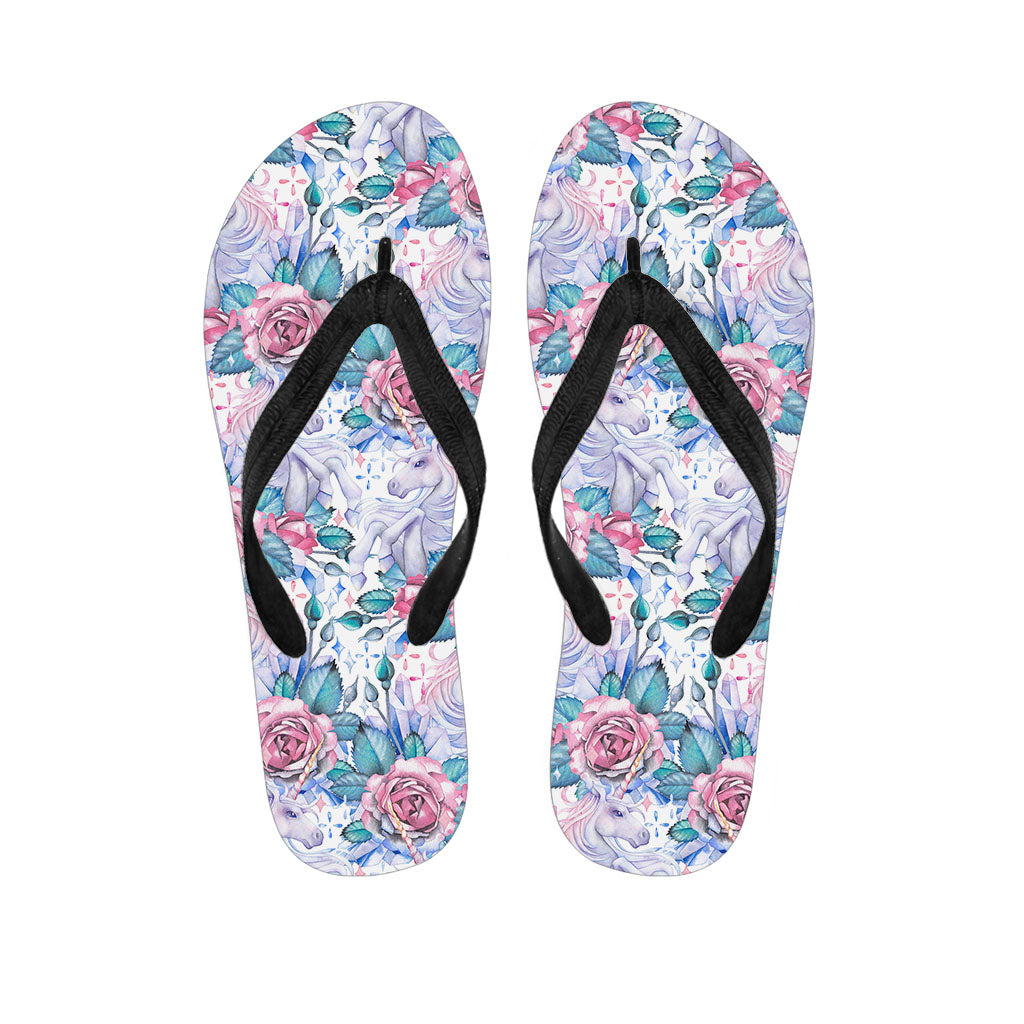 White Fairy Rose Unicorn Pattern Print Flip Flops For Men Women