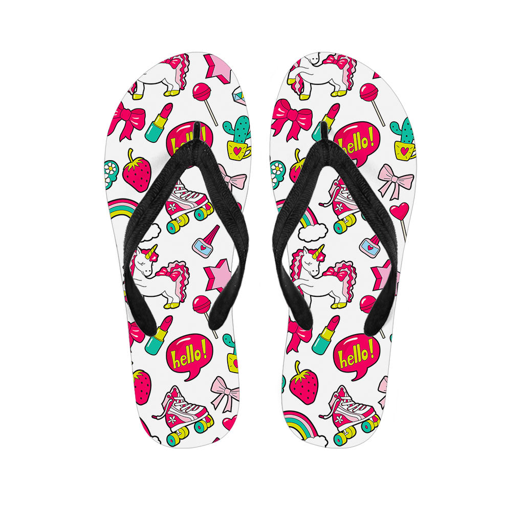 White Girly Unicorn Pattern Print Flip Flops For Men Women