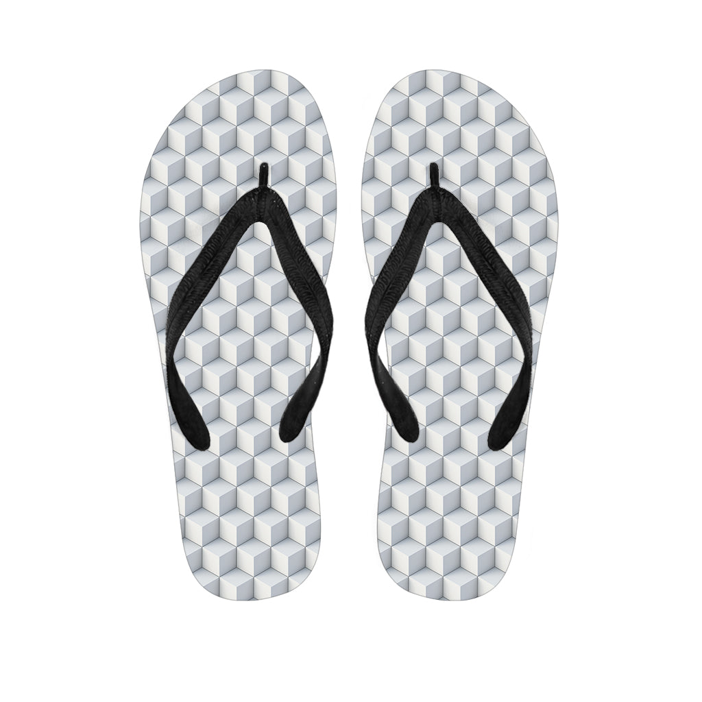 White Geometric Cube Shape Pattern Print Flip Flops For Men Women