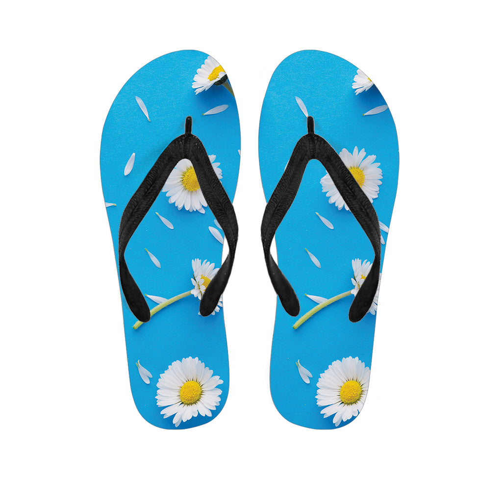 White Daffodil Flower Pattern Print Flip Flops For Men Women