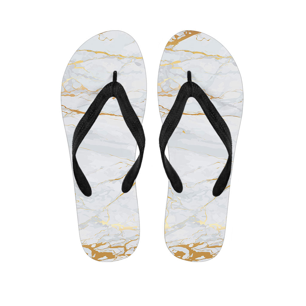 White Gold Scratch Marble Print Flip Flops For Men Women