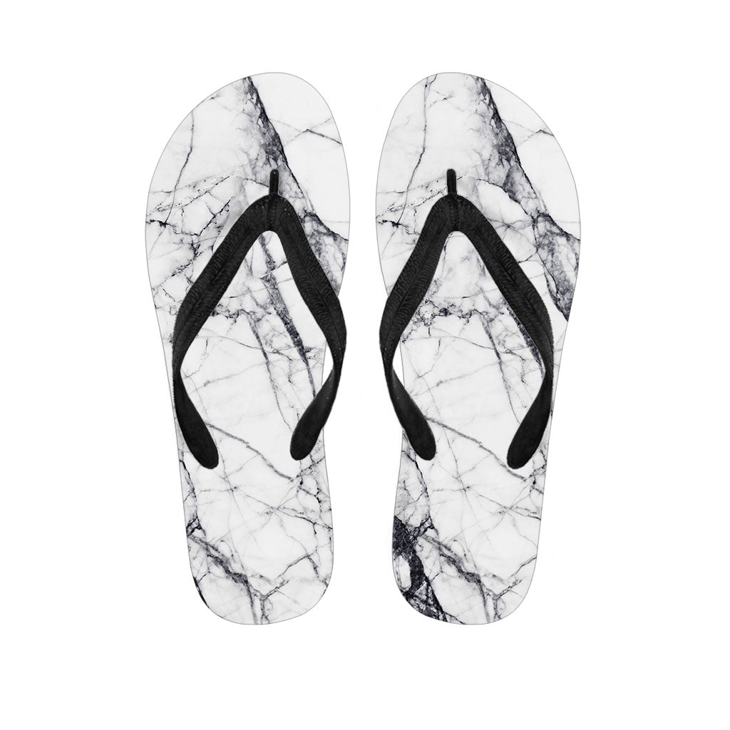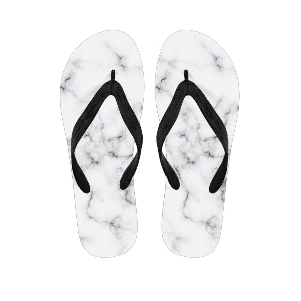 White Gray Scratch Marble Print Flip Flops For Men Women