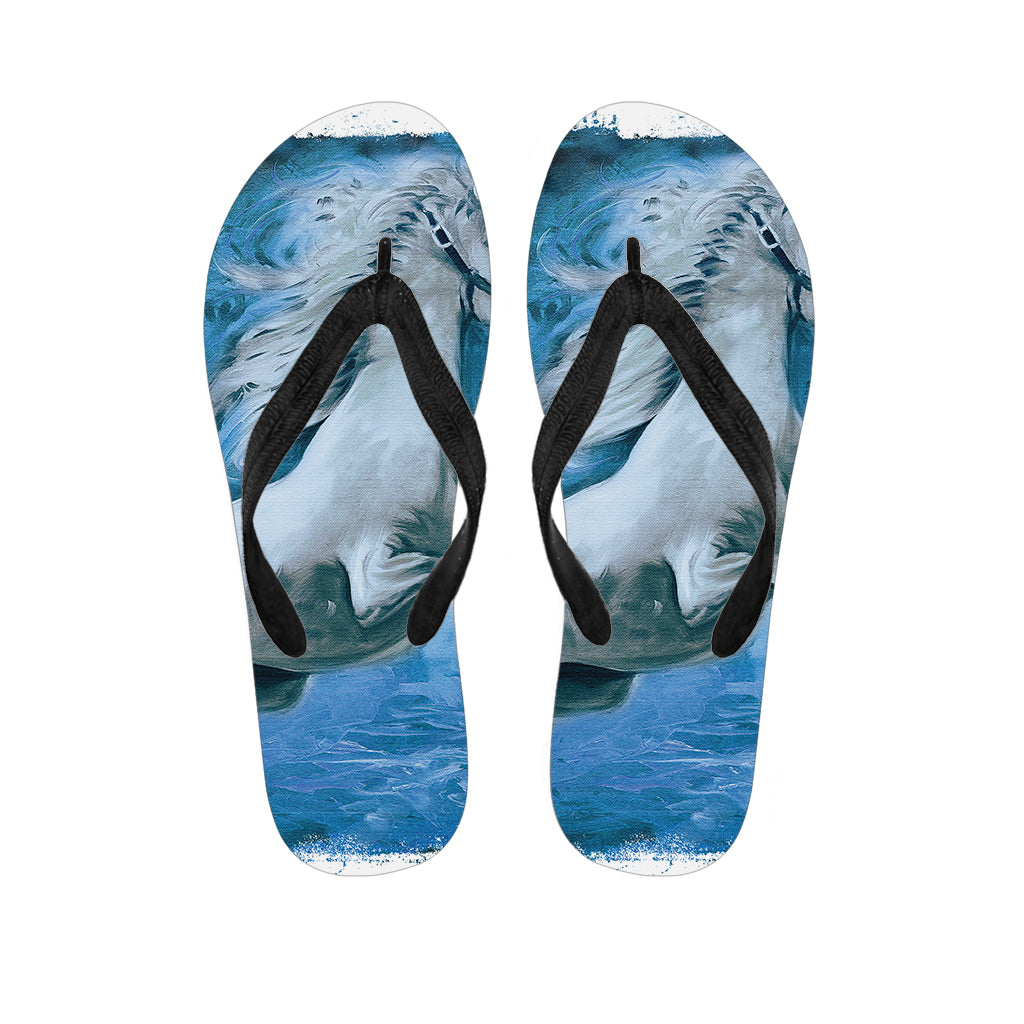 White Grey Smoke Marble Print Flip Flops For Men Women
