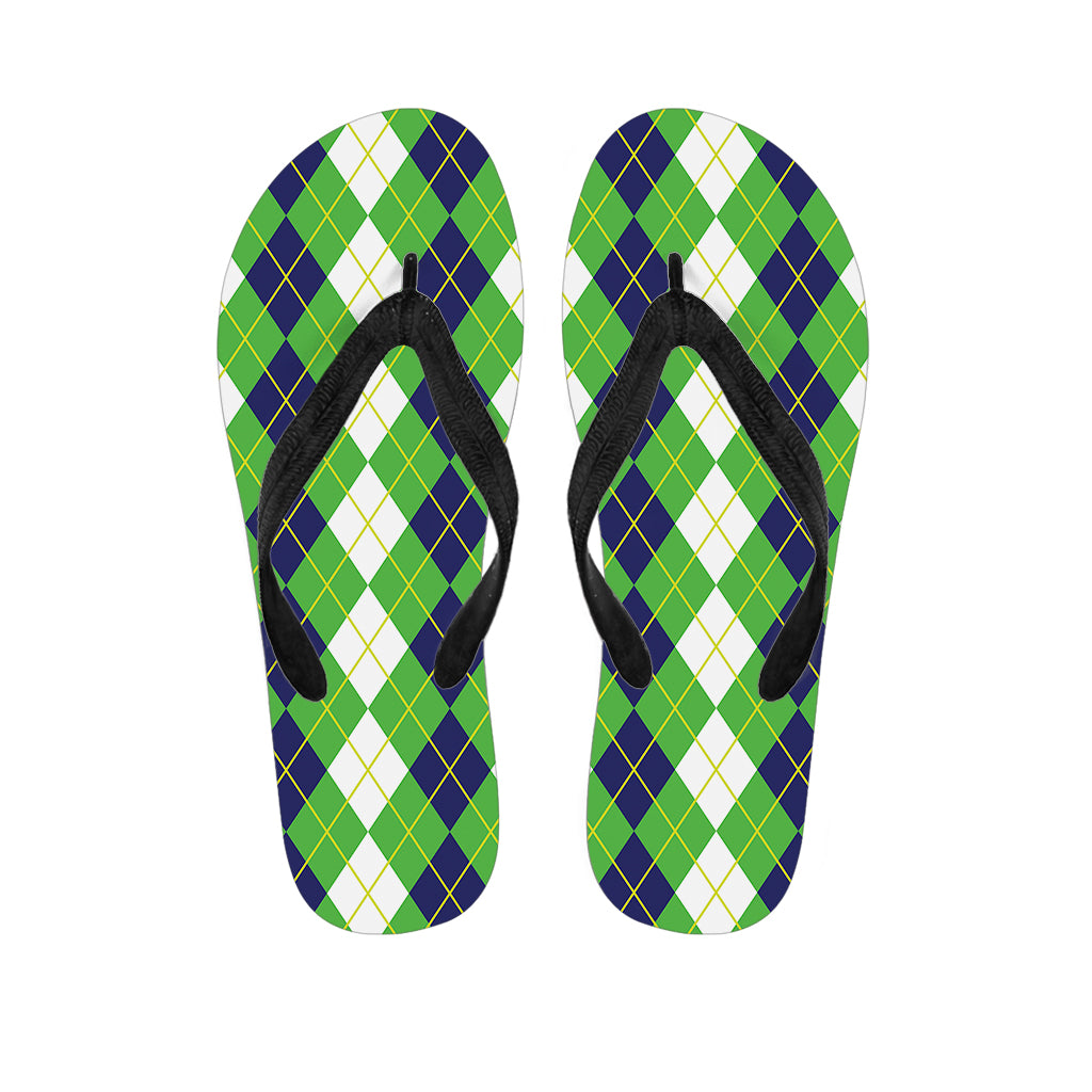 White Green And Navy Argyle Print Flip Flops For Men Women