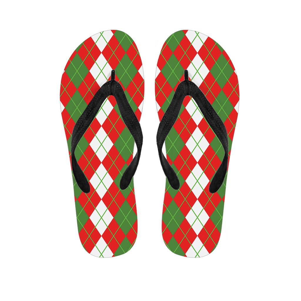 White Green And Red Argyle Pattern Print Flip Flops For Men Women