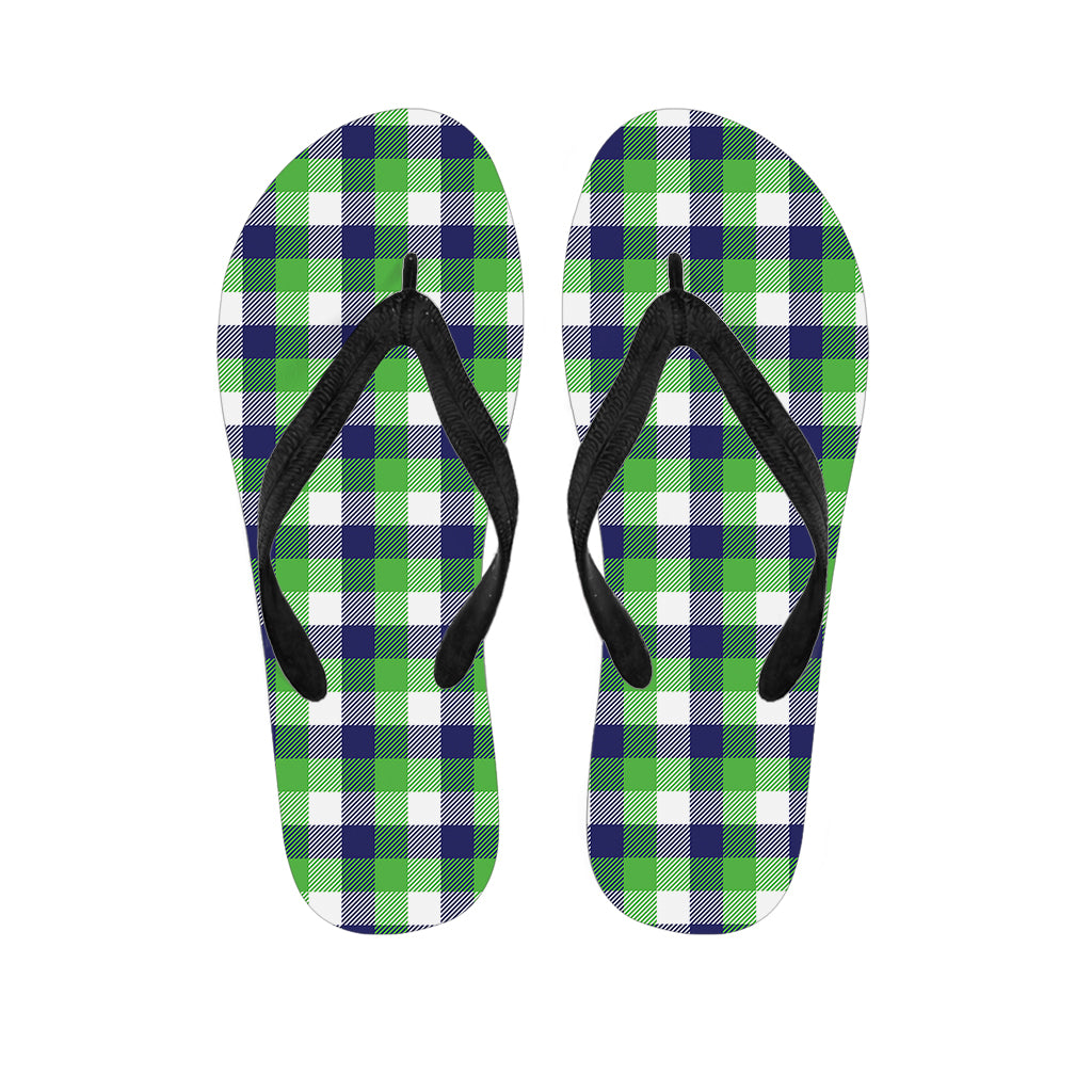 White Green And Blue Buffalo Plaid Print Flip Flops For Men Women
