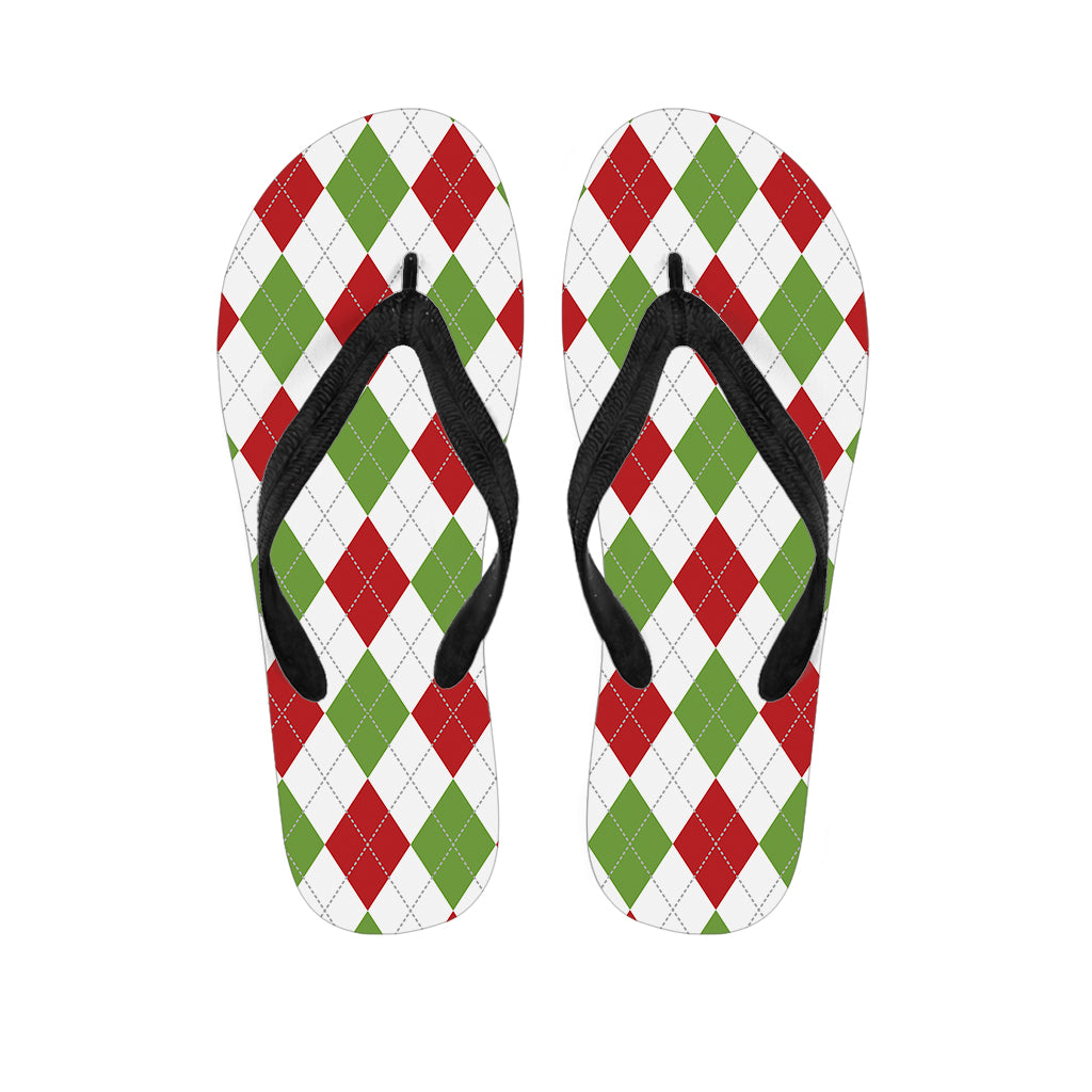 White Red And Green Argyle Pattern Print Flip Flops For Men Women