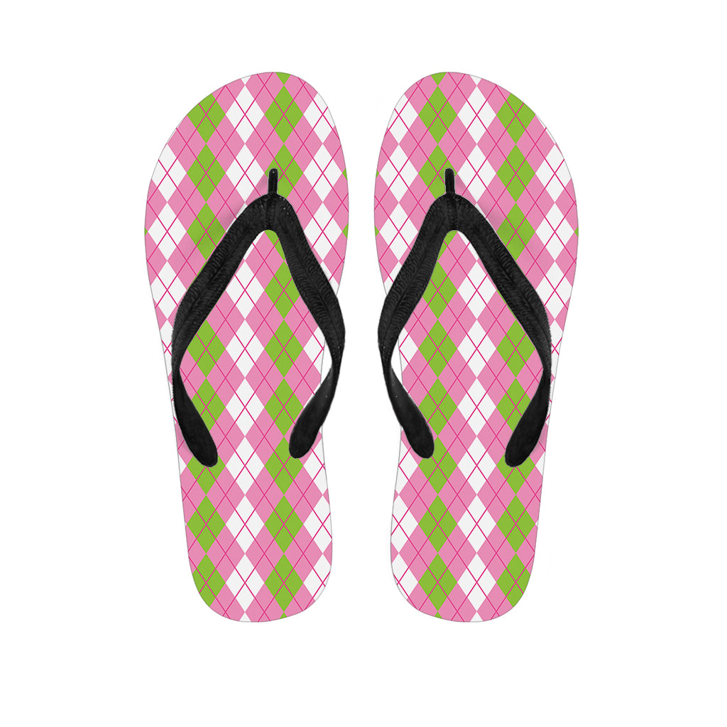 White Pink And Green Argyle Print Flip Flops For Men Women
