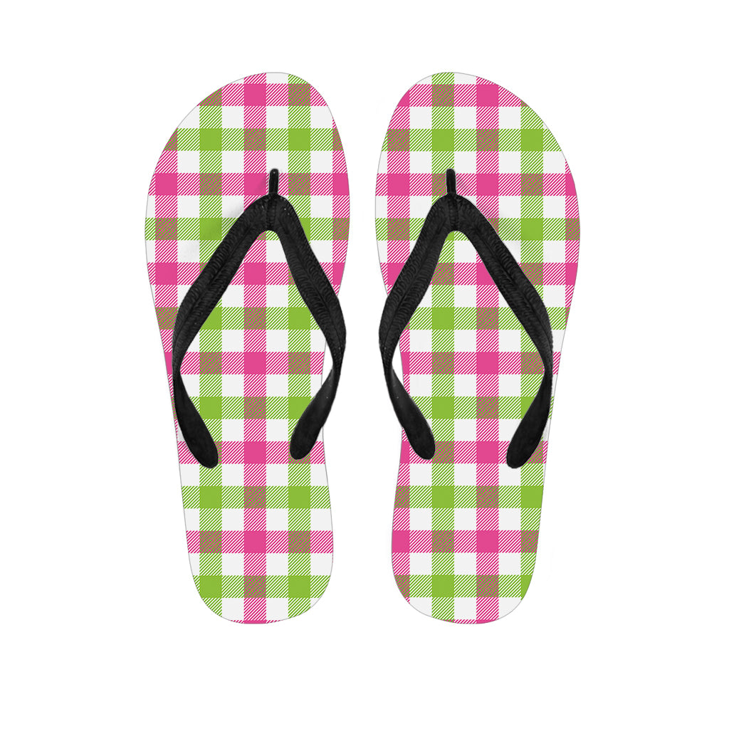 White Pink And Green Buffalo Plaid Print Flip Flops For Men Women