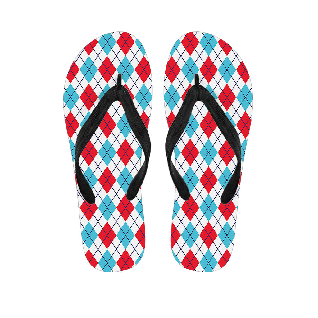 White Red And Blue Argyle Pattern Print Flip Flops For Men Women