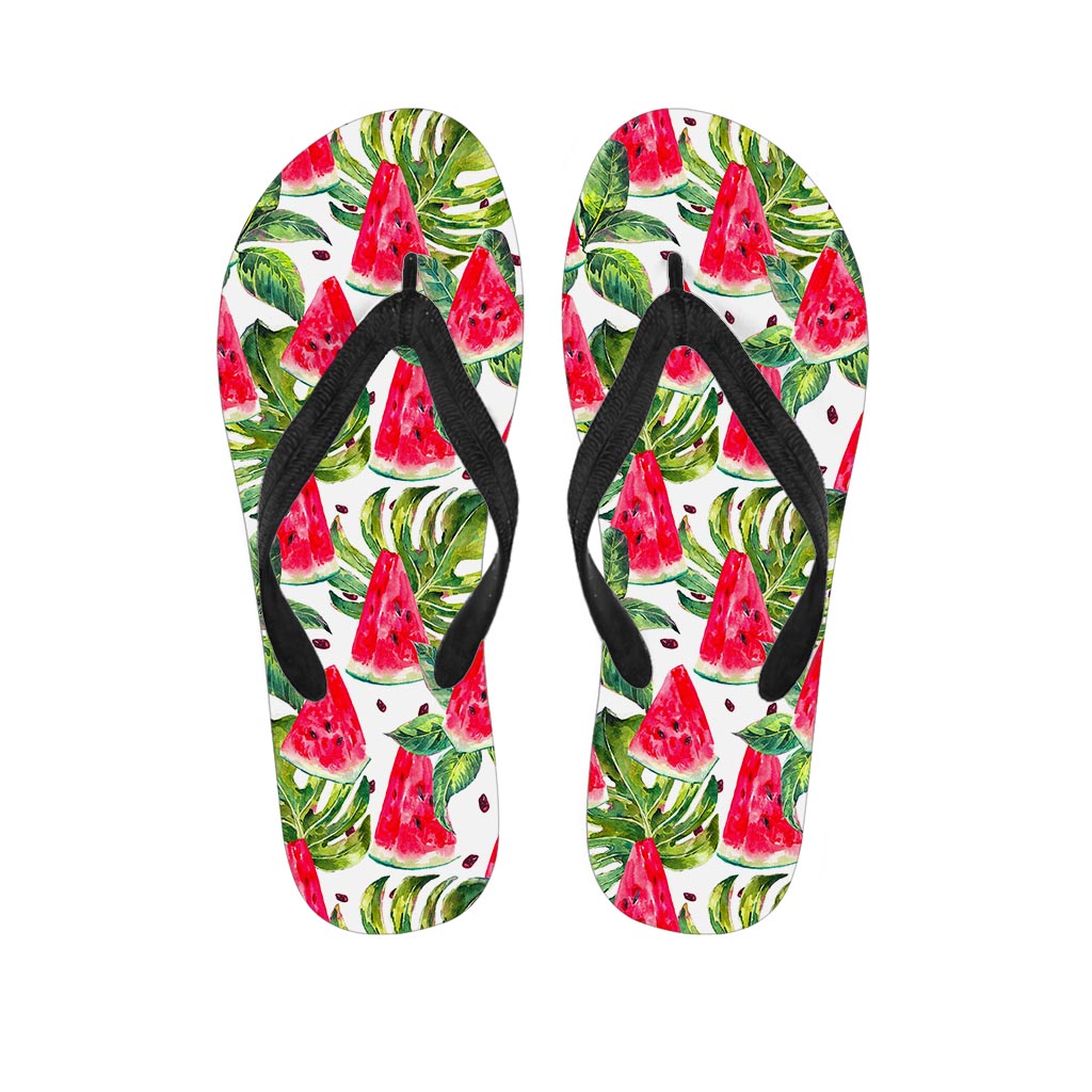 White Tropical Watermelon Pattern Print Flip Flops For Men Women