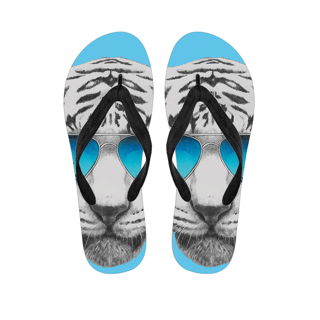 White Tiger With Sunglasses Print Flip Flops For Men Women