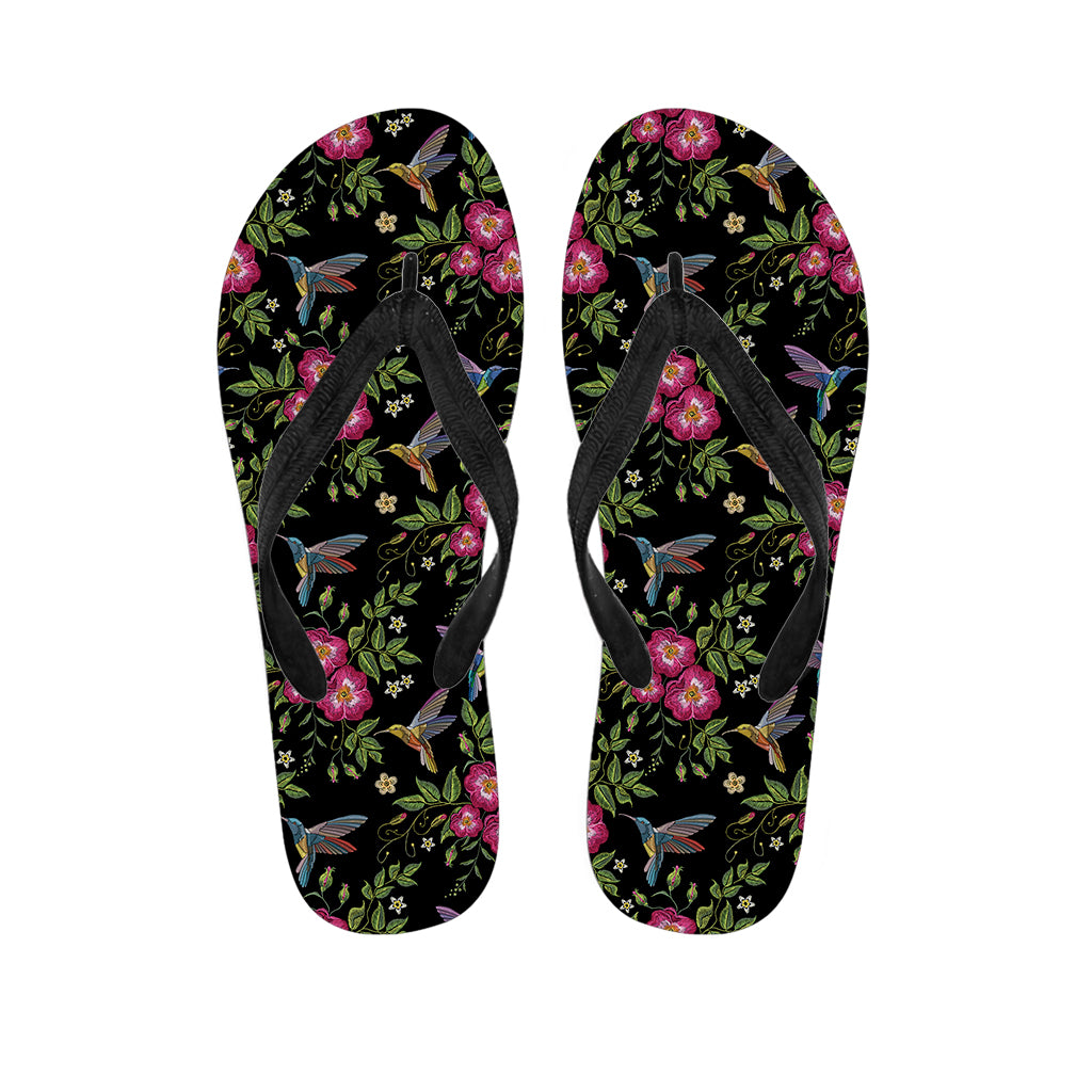 Wild Flowers And Hummingbird Print Flip Flops For Men Women