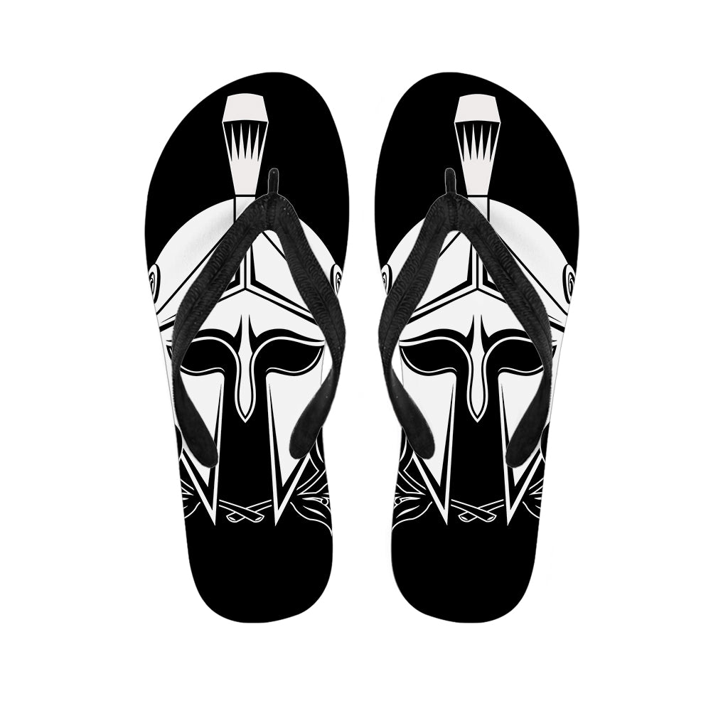 Black And White Spartan Helmet Print Flip Flops For Men Women