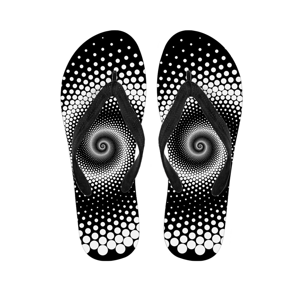 Black And White Spiral Dot Print Flip Flops For Men Women