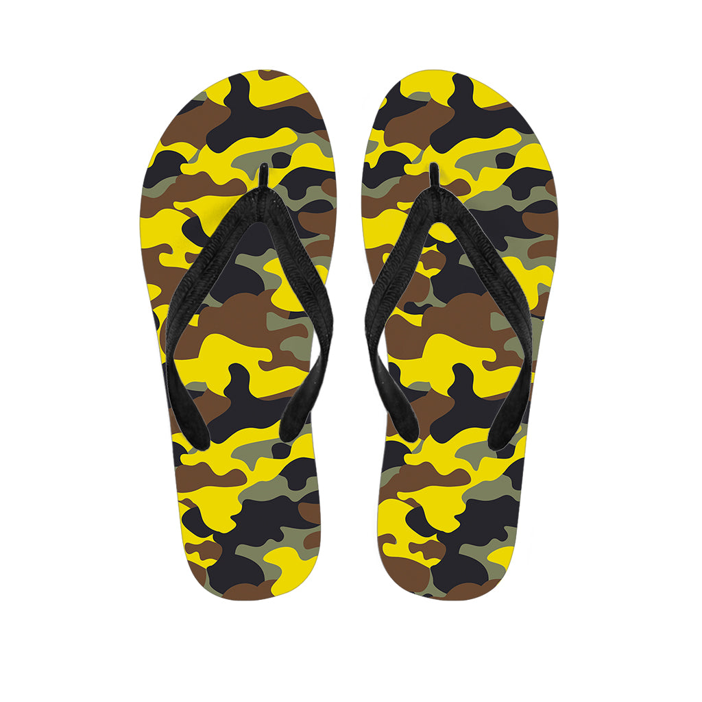 Yellow Brown And Black Camouflage Print Flip Flops For Men Women