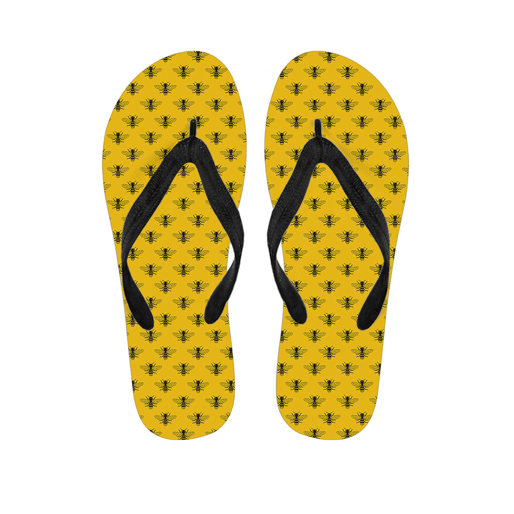 Yellow Bee Pattern Print Flip Flops For Men Women
