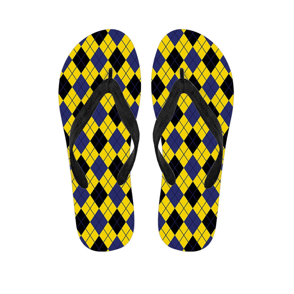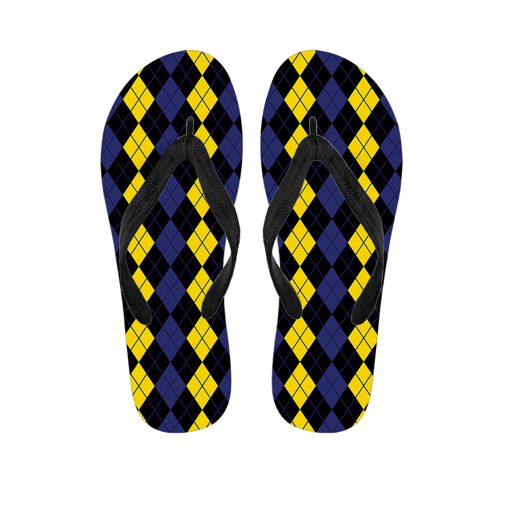 Yellow Blue And Black Argyle Print Flip Flops For Men Women