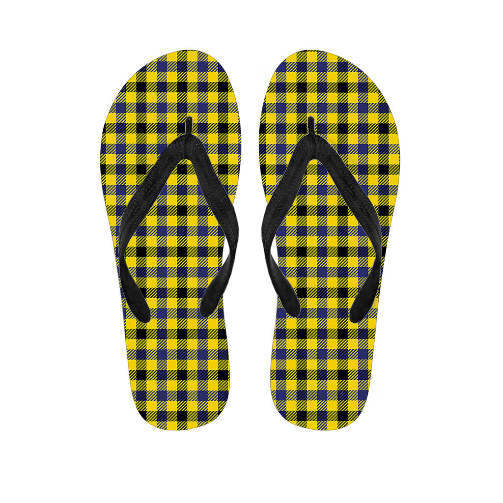 Yellow Black And Navy Plaid Print Flip Flops For Men Women
