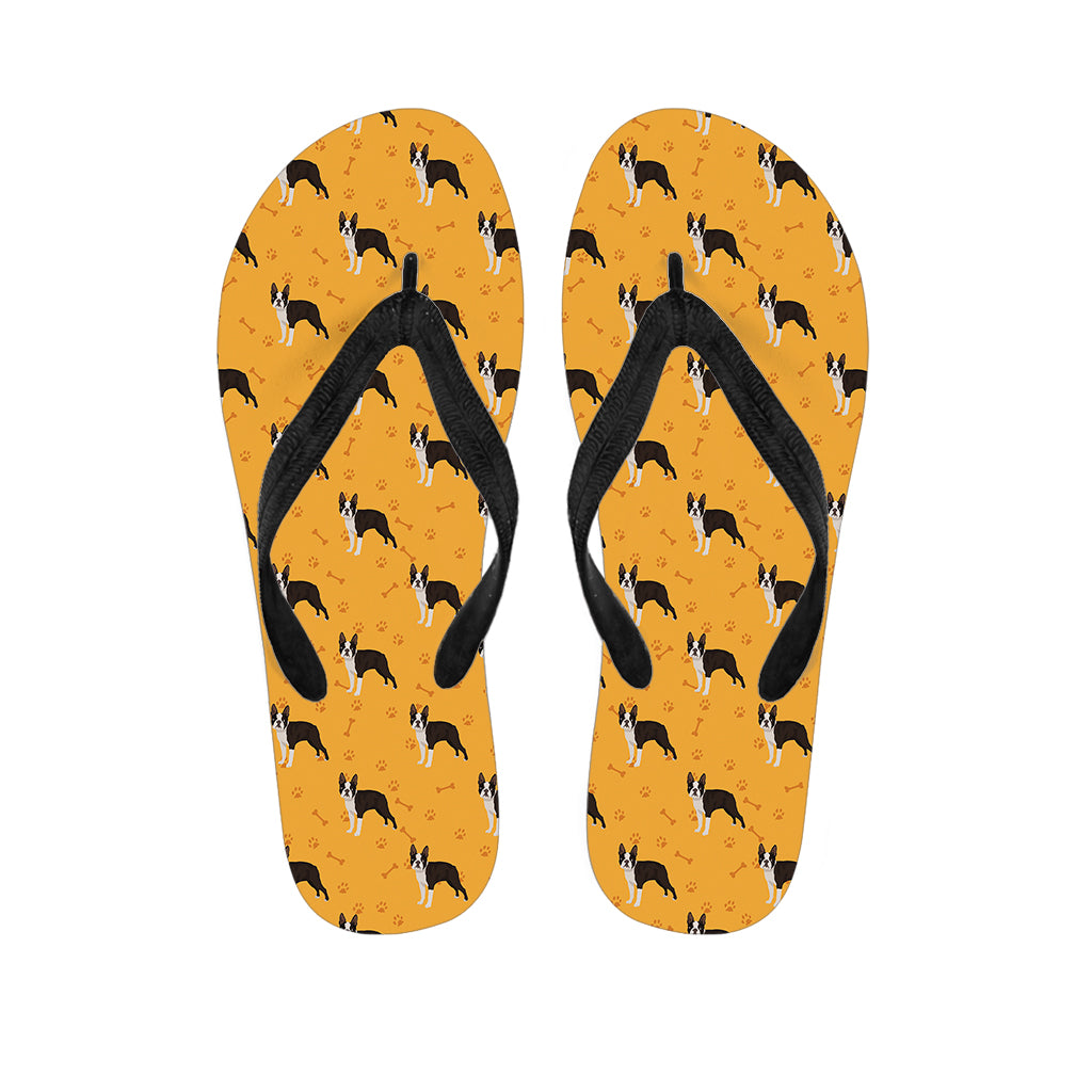 Yellow Boston Terrier Pattern Print Flip Flops For Men Women