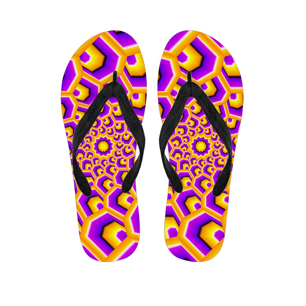 Yellow Hive Moving Optical Illusion Flip Flops For Men Women