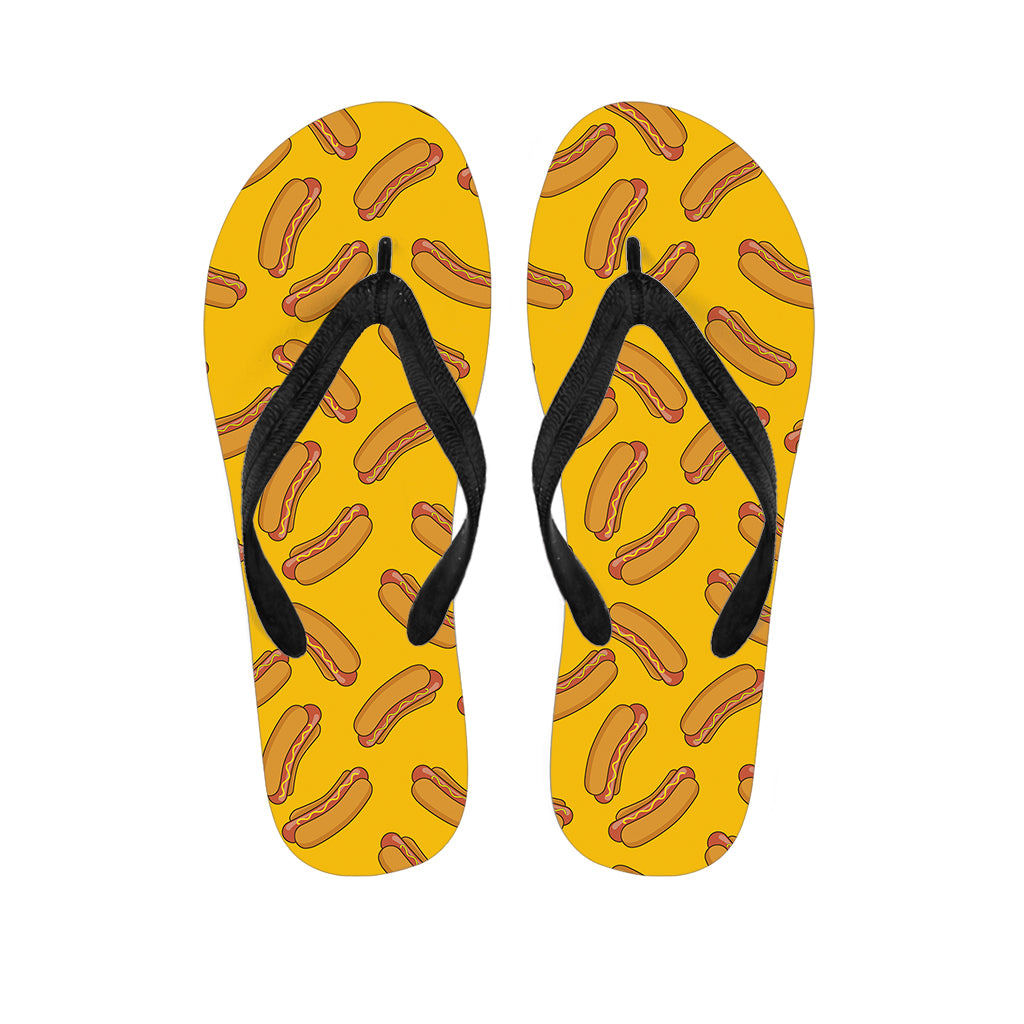 Yellow Hot Dog Pattern Print Flip Flops For Men Women