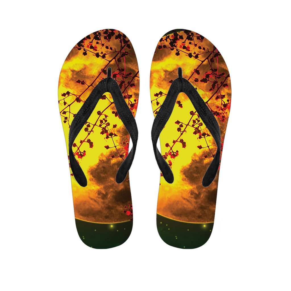 Yellow Full Moon Print Flip Flops For Men Women