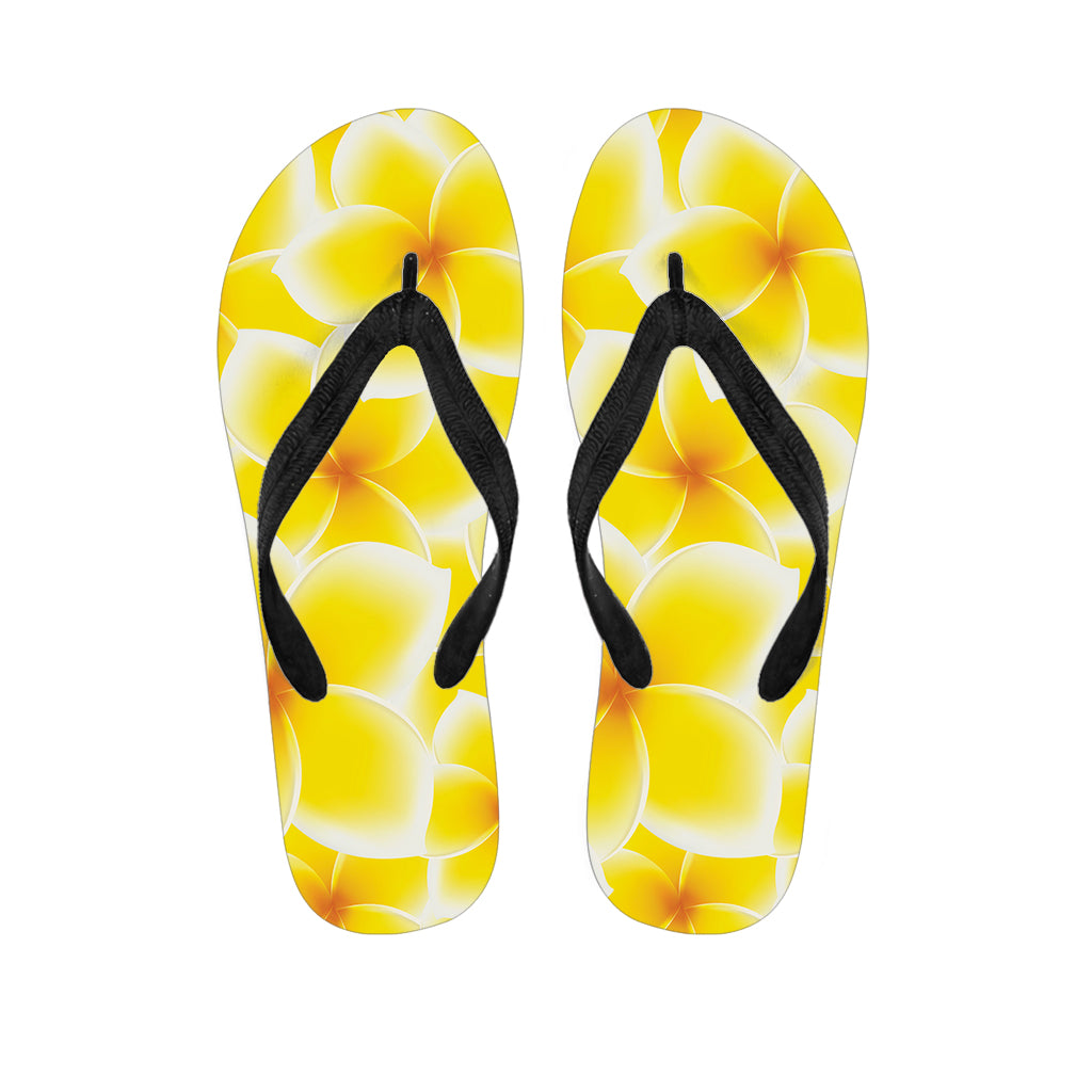 Yellow Frangipani Pattern Print Flip Flops For Men Women