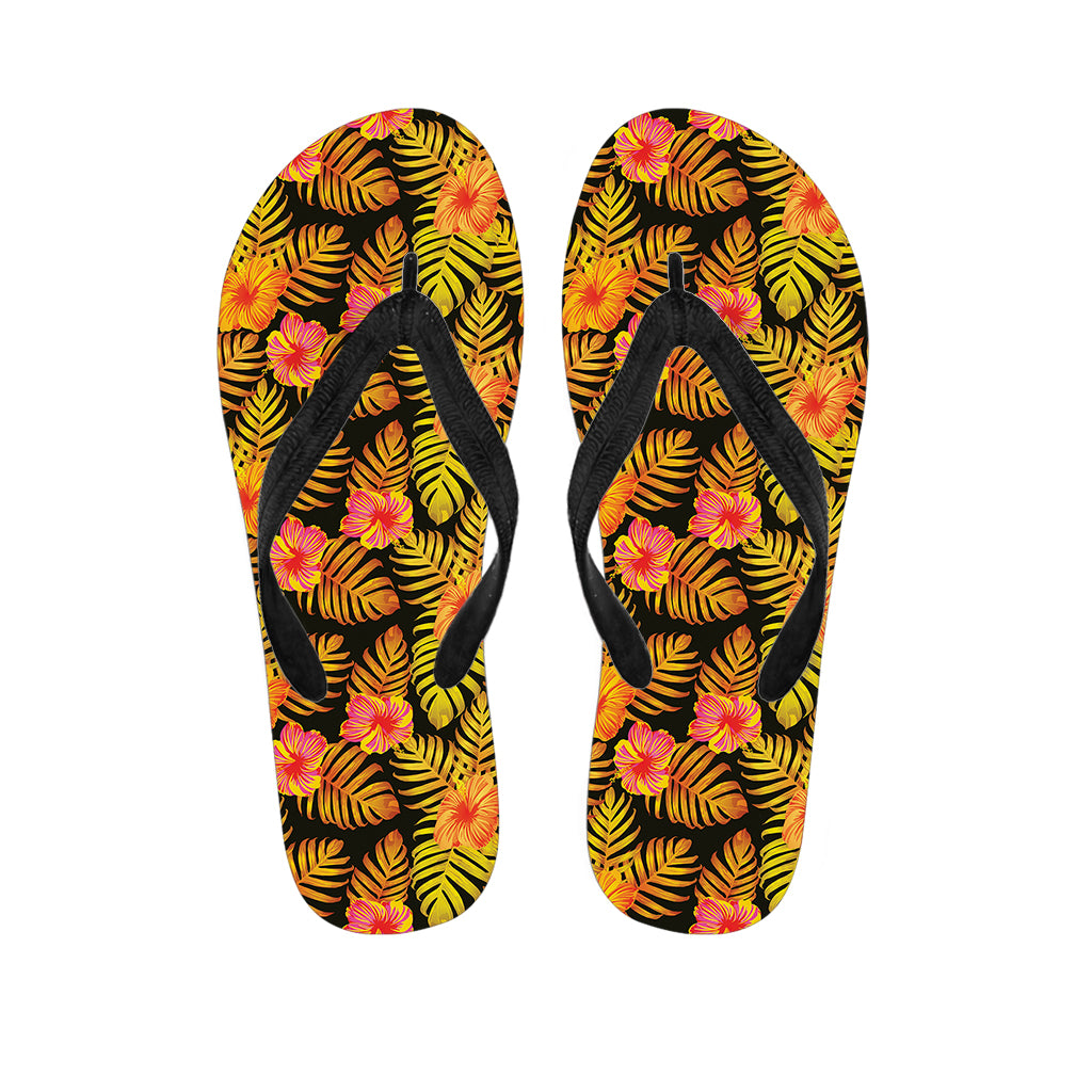 Yellow Hawaiian Tropical Pattern Print Flip Flops For Men Women
