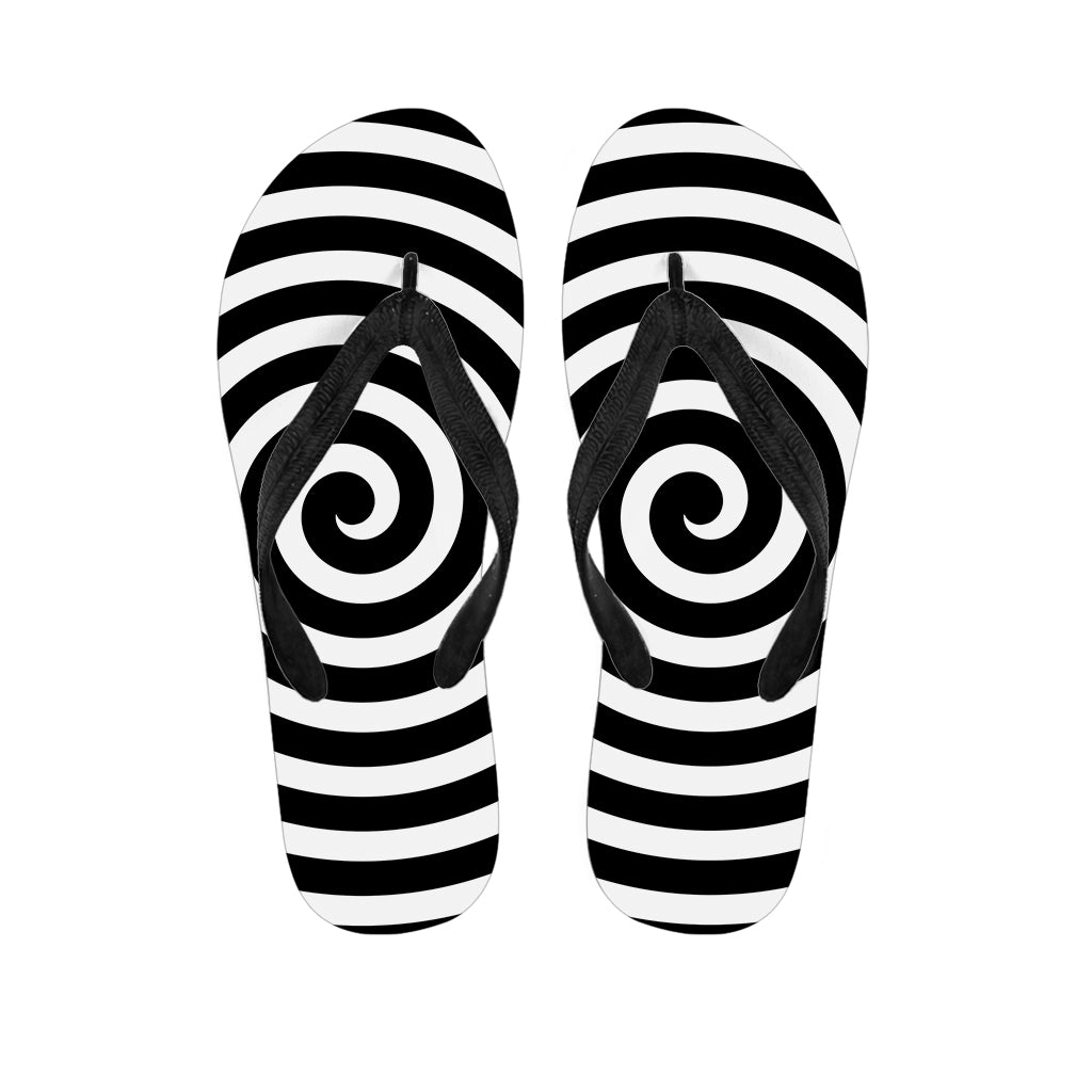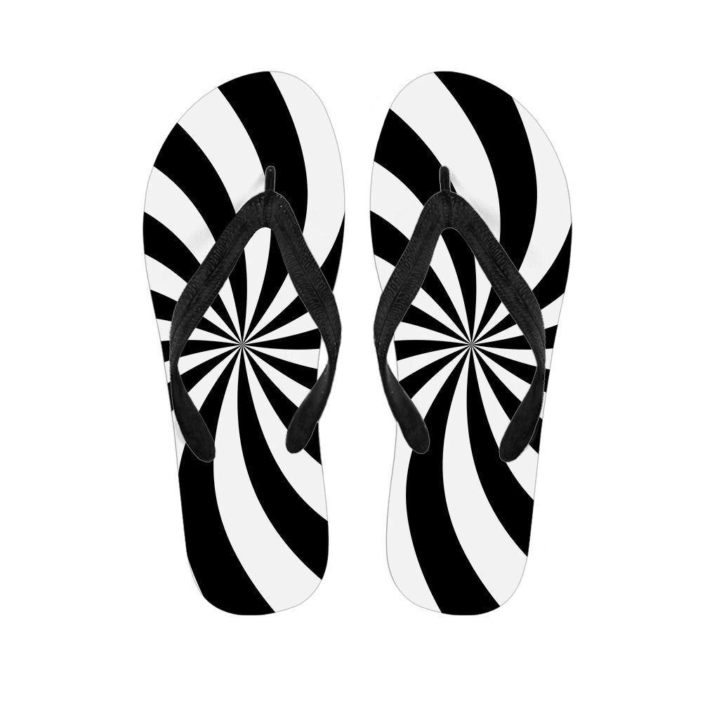 Black And White Swirl Illusion Print Flip Flops For Men Women
