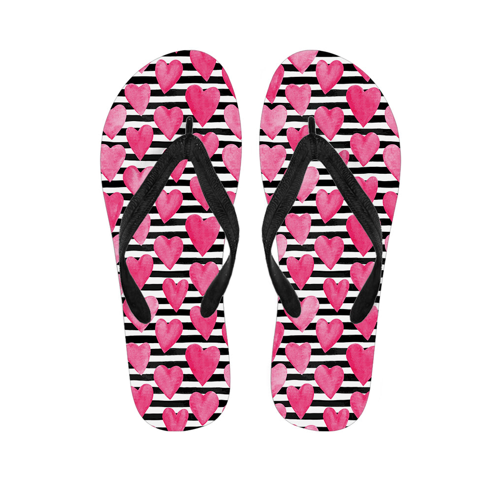 Black And White Striped Heart Print Flip Flops For Men Women