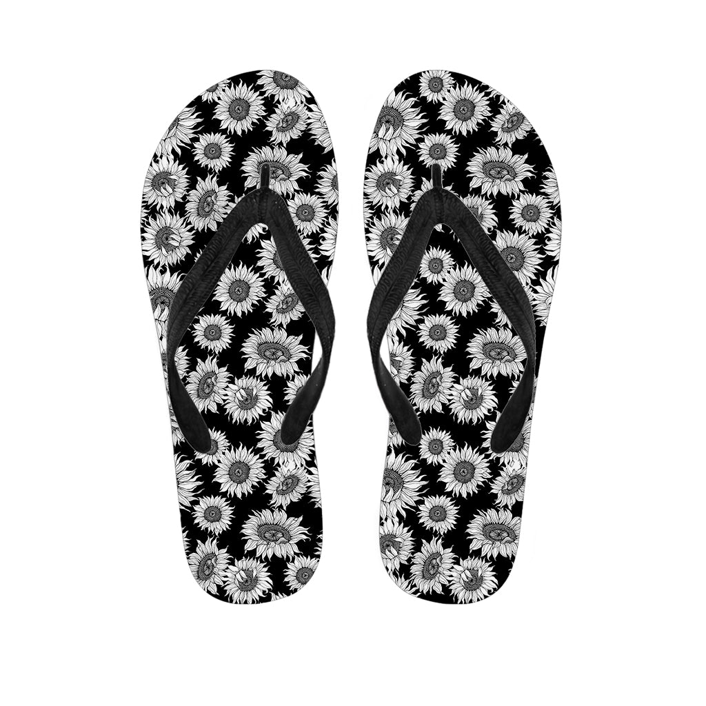 Black And White Sunflower Pattern Print Flip Flops For Men Women