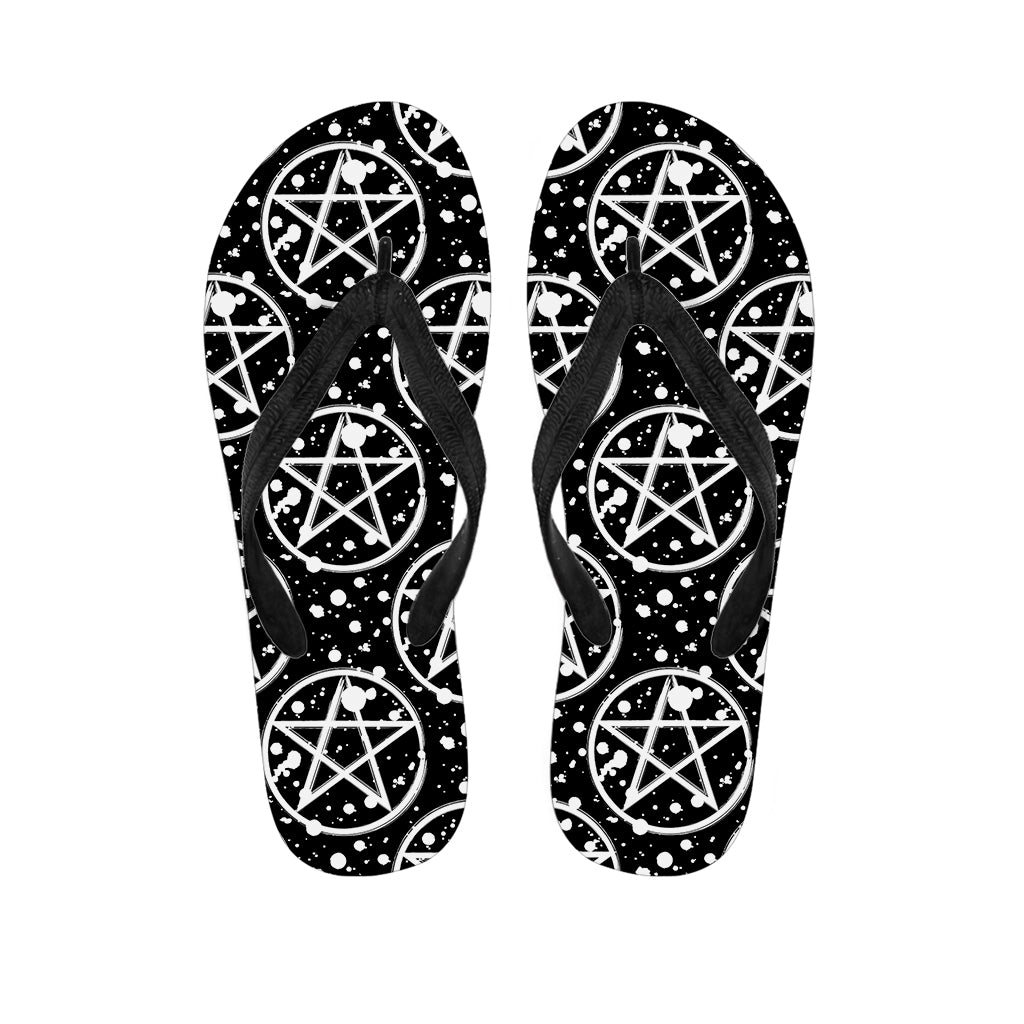 Black And White Wicca Pentagram Print Flip Flops For Men Women
