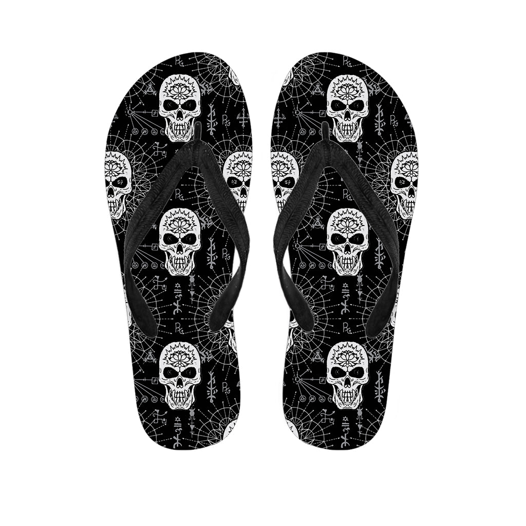 Black And White Wicca Evil Skull Print Flip Flops For Men Women