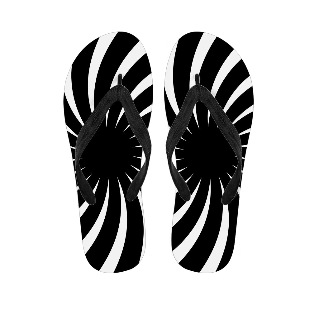 Black And White Vortex Swirl Print Flip Flops For Men Women