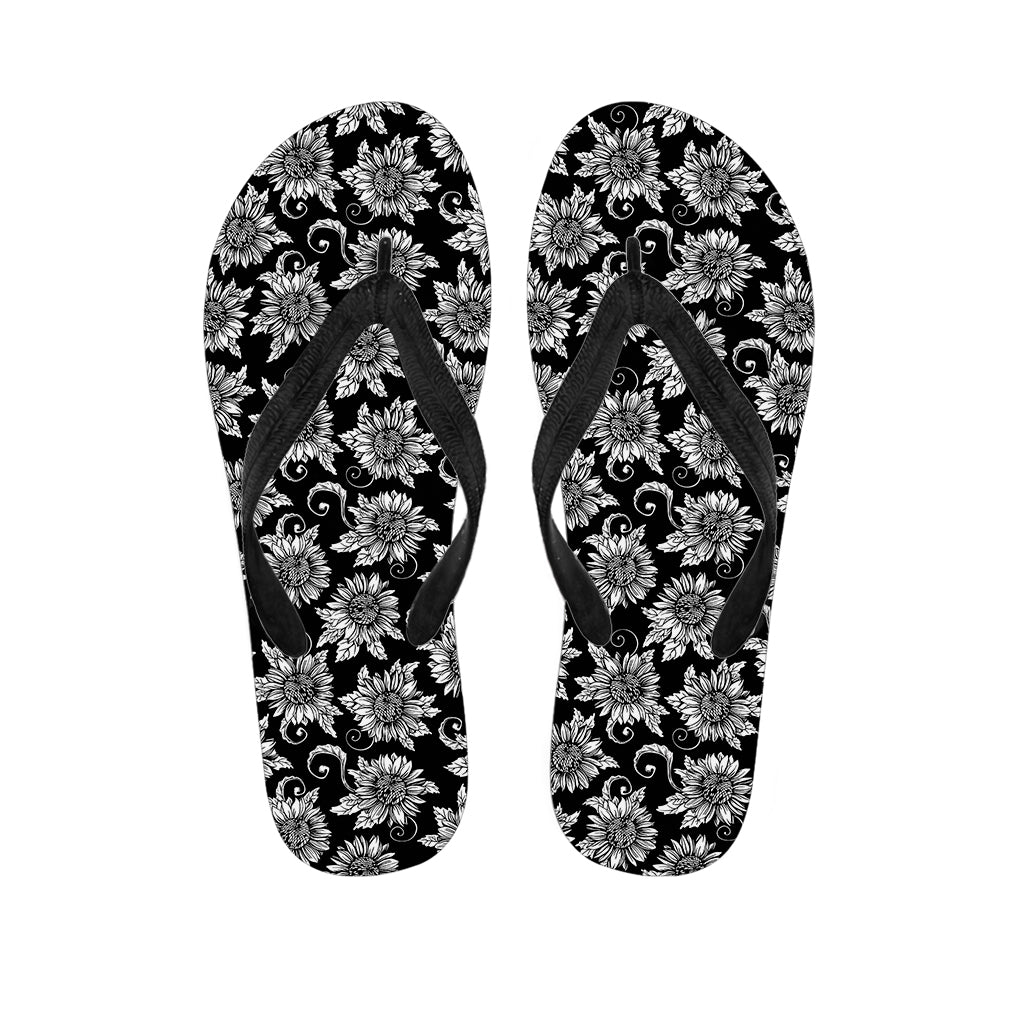 Black And White Vintage Sunflower Print Flip Flops For Men Women