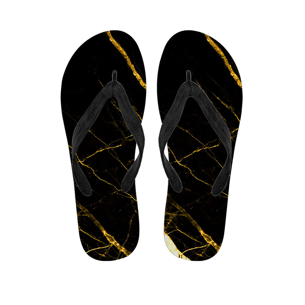 Black Gold Marble Print Flip Flops For Men Women