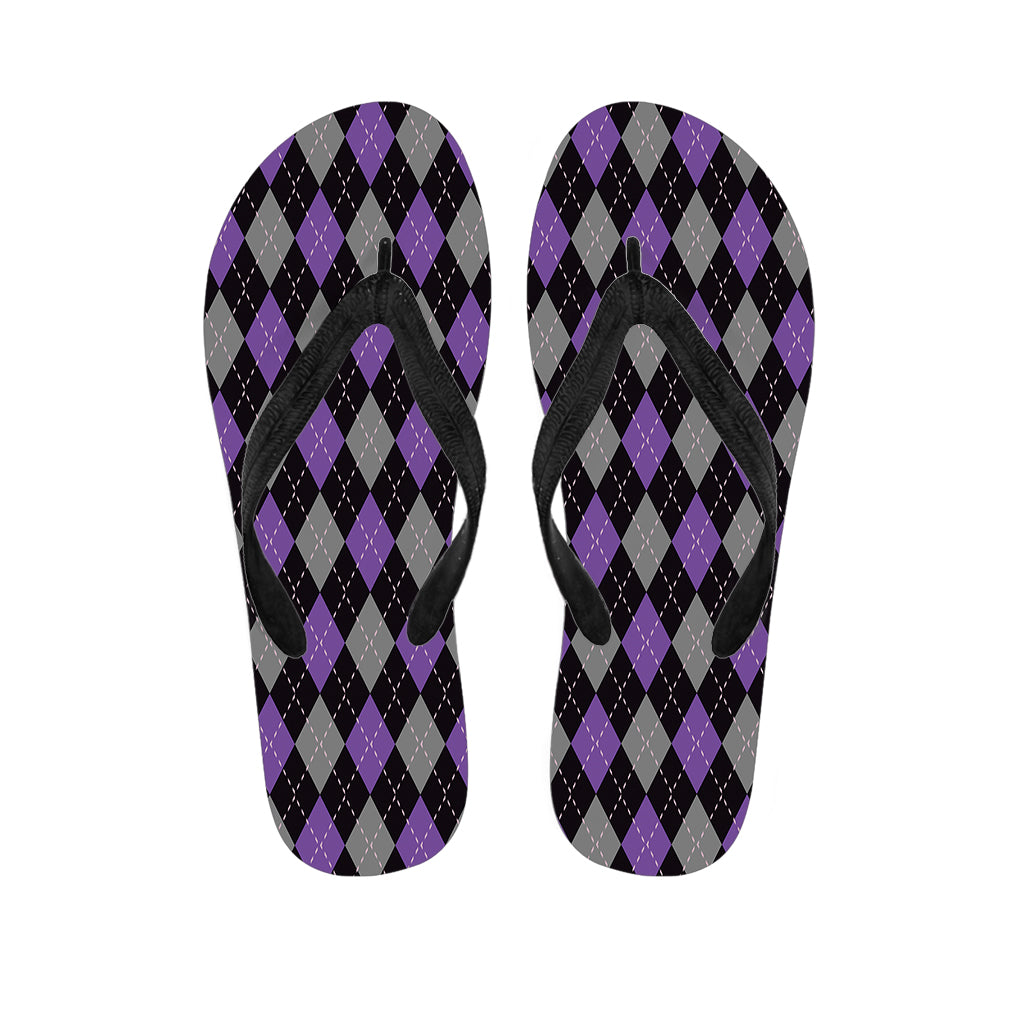 Black Grey And Purple Argyle Print Flip Flops For Men Women