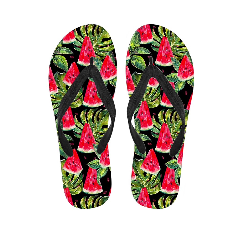 Black Palm Leaf Watermelon Pattern Print Flip Flops For Men Women